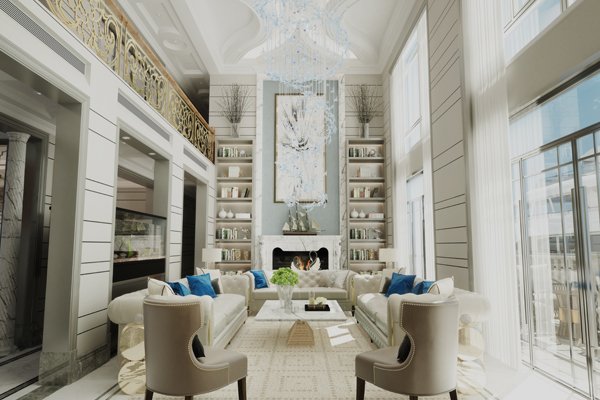 Luxury living room with fireplace