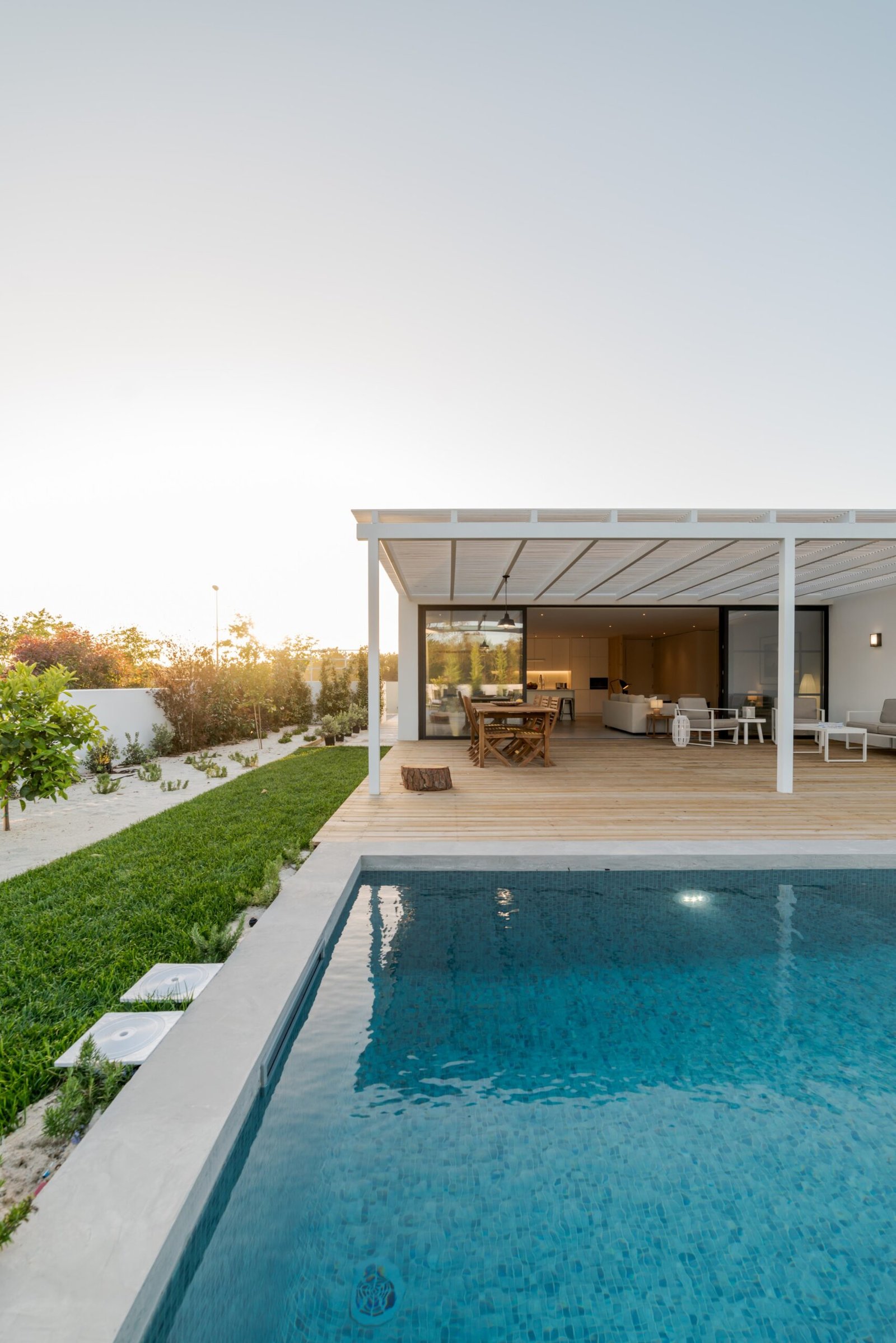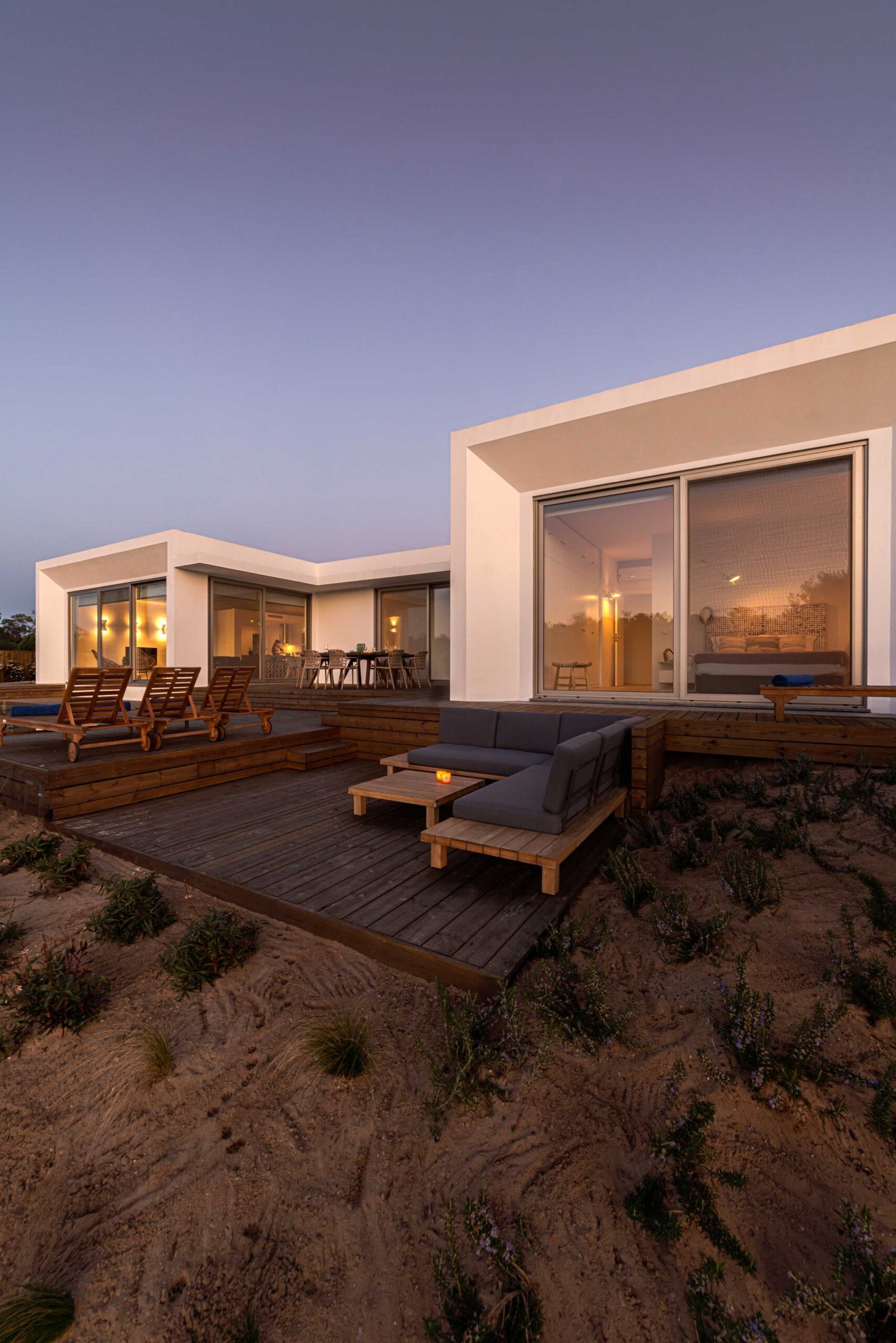 Relax corner with cushions in deck in modern villa terrace